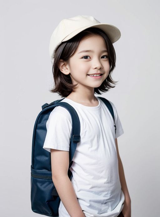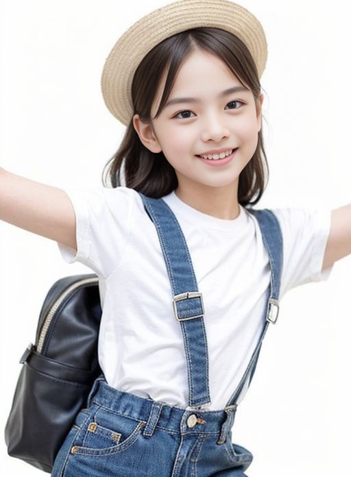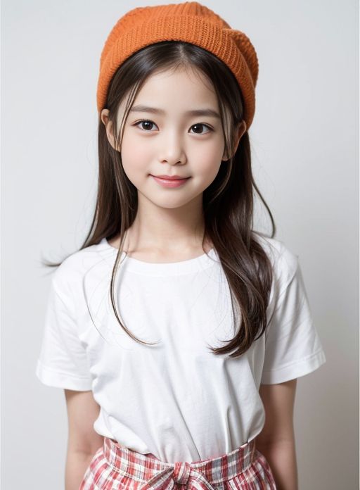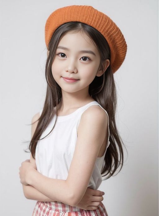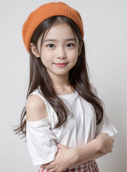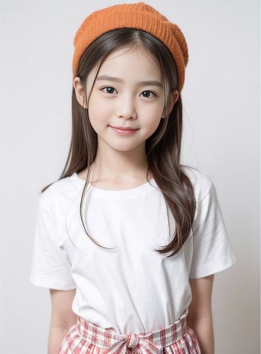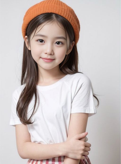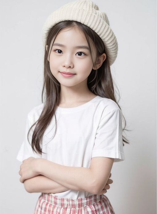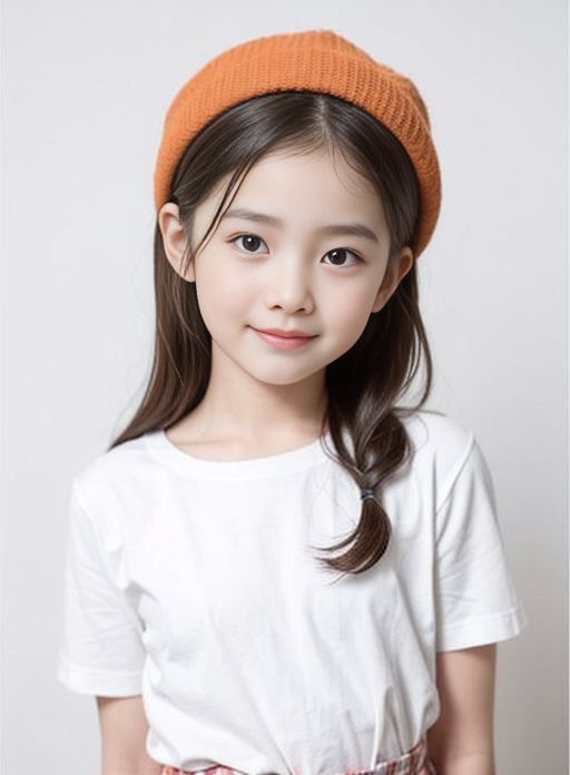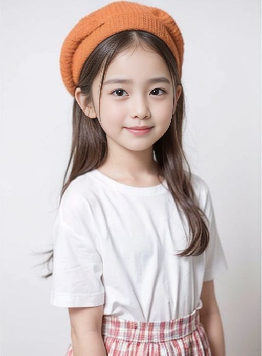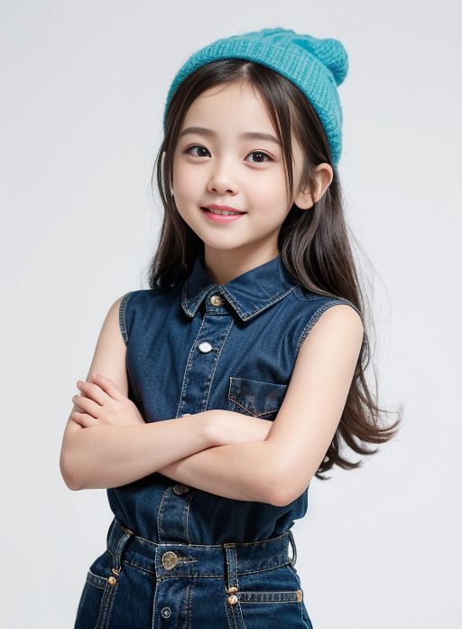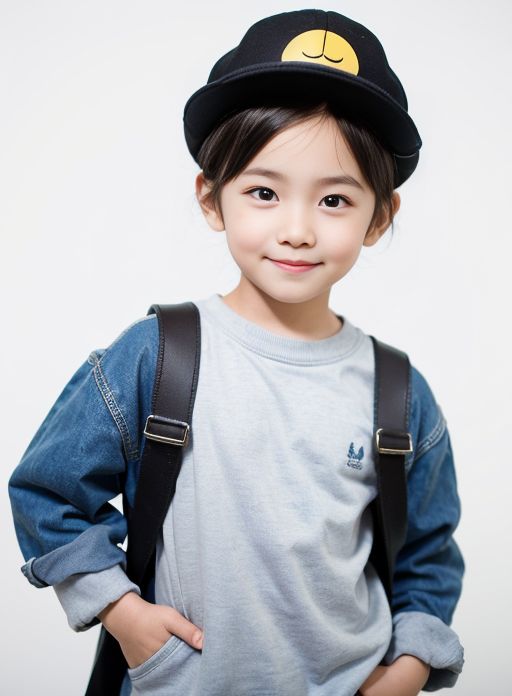 Dressed in age-appropriate and stylish clothing, the child model wears a comfortable yet fashionable outfit that suits their personality. The attire should be colorful and fun, reflecting their vibrant spirit and energy. Accessories, such as a playful hat or a cute hairpin, can be added to enhance the overall charm.