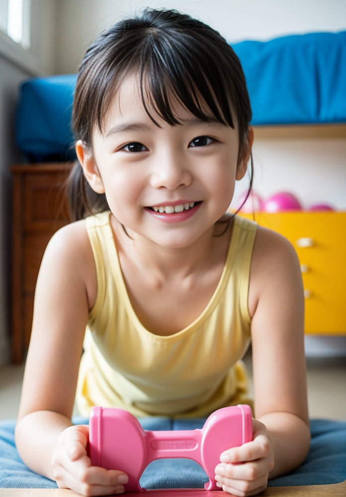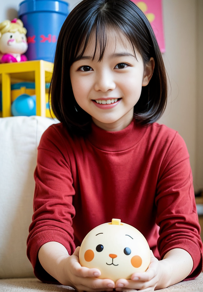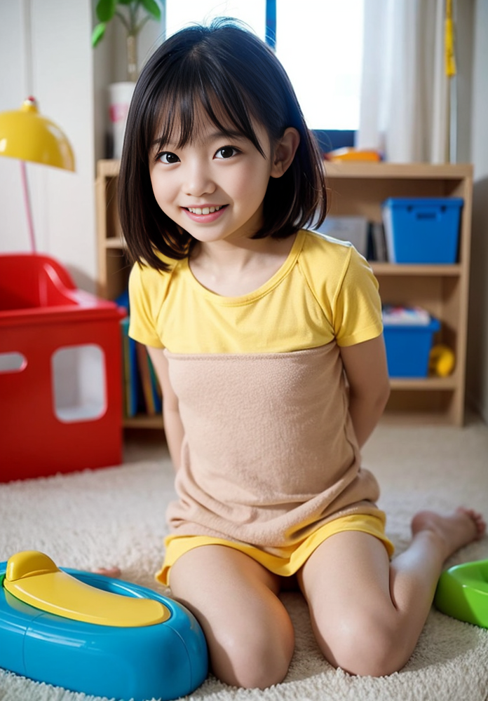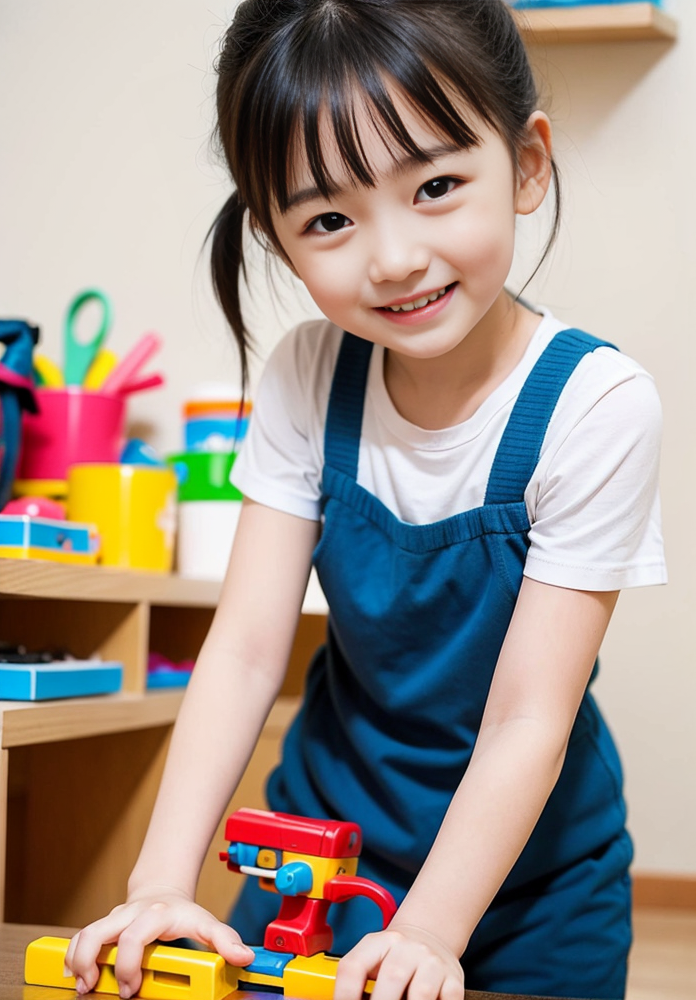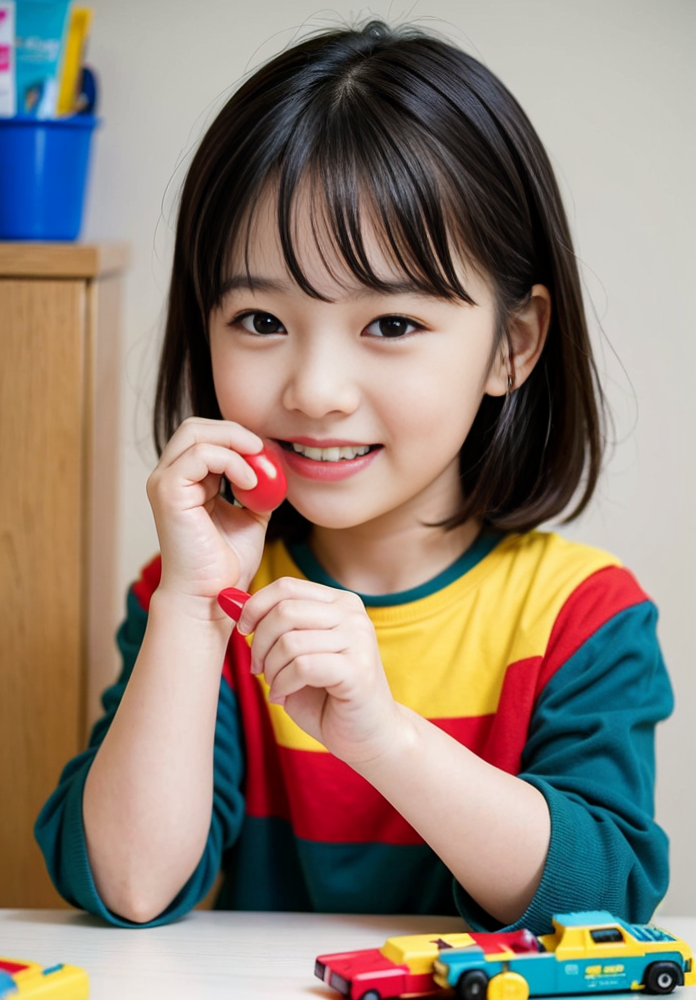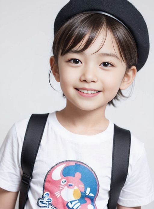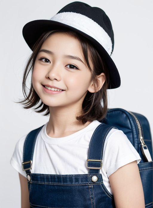 Dressed in age-appropriate and stylish clothing, the child model wears a comfortable yet fashionable outfit that suits their personality. The attire should be colorful and fun, reflecting their vibrant spirit and energy. Accessories, such as a playful hat or a cute hairpin, can be added to enhance the overall charm.