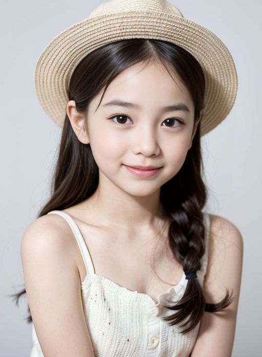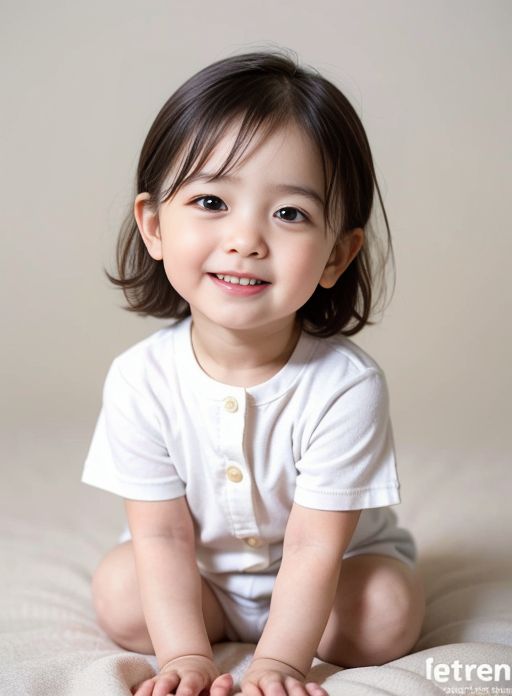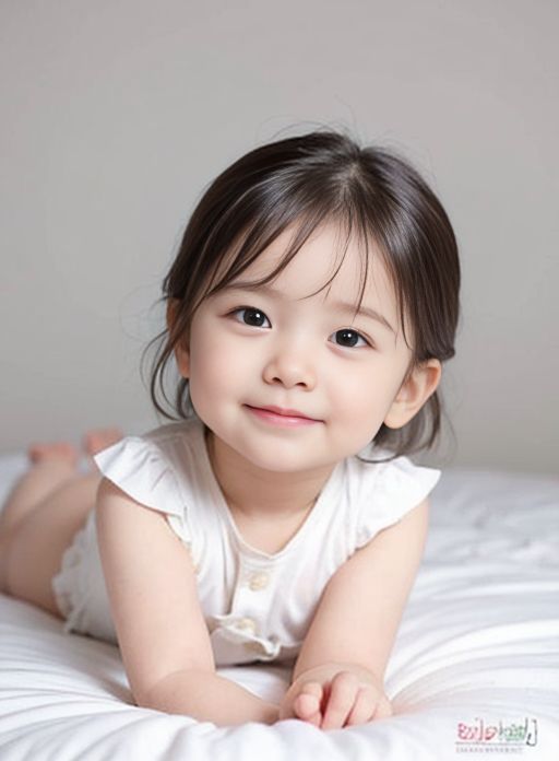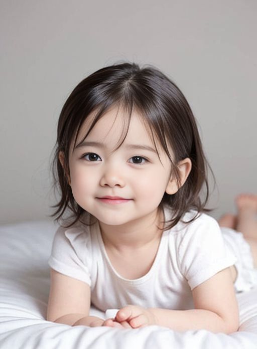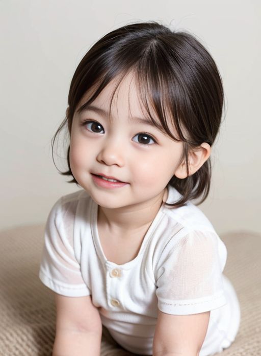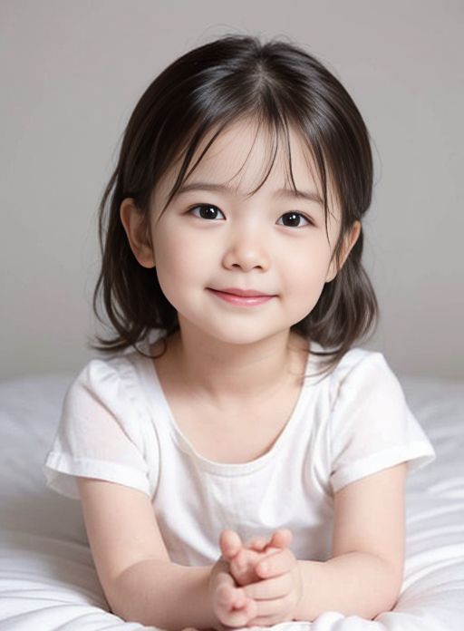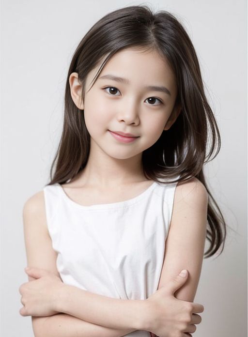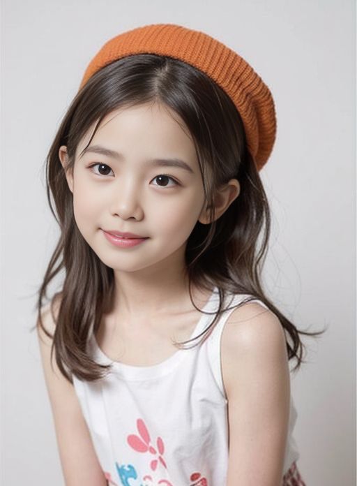 The child model has big, bright eyes that reflect curiosity and innocence. Their eyebrows are naturally soft and add to the overall sweetness of their face. Their nose is petite and suits their adorable features. Their lips have a gentle curve, often forming a captivating smile.